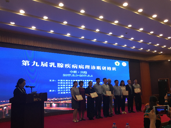 此次会议设立优秀病理科研团队(课题组)研究成果评选环节,在全国范围内评选出5个优秀病理科研团队(课题组)。我院高鹏教授带领的乳腺病理团队获此殊荣,扩大了我院病理学系在全国的影响力。另外,大会还评选出10篇优秀英文论文,高鹏教授和李丽主任医师的3篇英文论文入选。