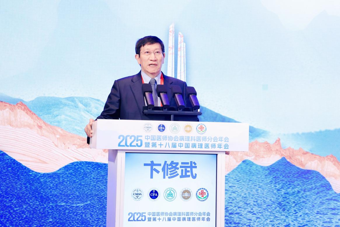 本次大会主席中国科学院院士、中国医师协会病理科医师分会会长、陆军军医大学病理学研究所所长卞修武教授向莅临本次会议的各位领导、专家及病理同仁表示热烈欢迎和衷心感谢,同时向承办单位山东大学基础医学院病理学系/齐鲁医院病理科为承办此次年会所付出的努力和所做的工作表示感谢。
